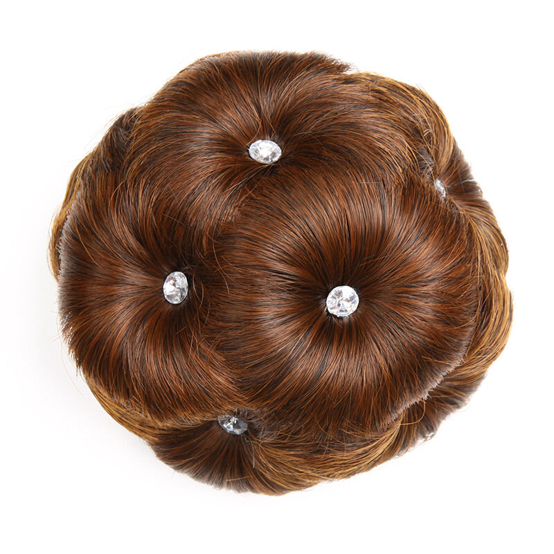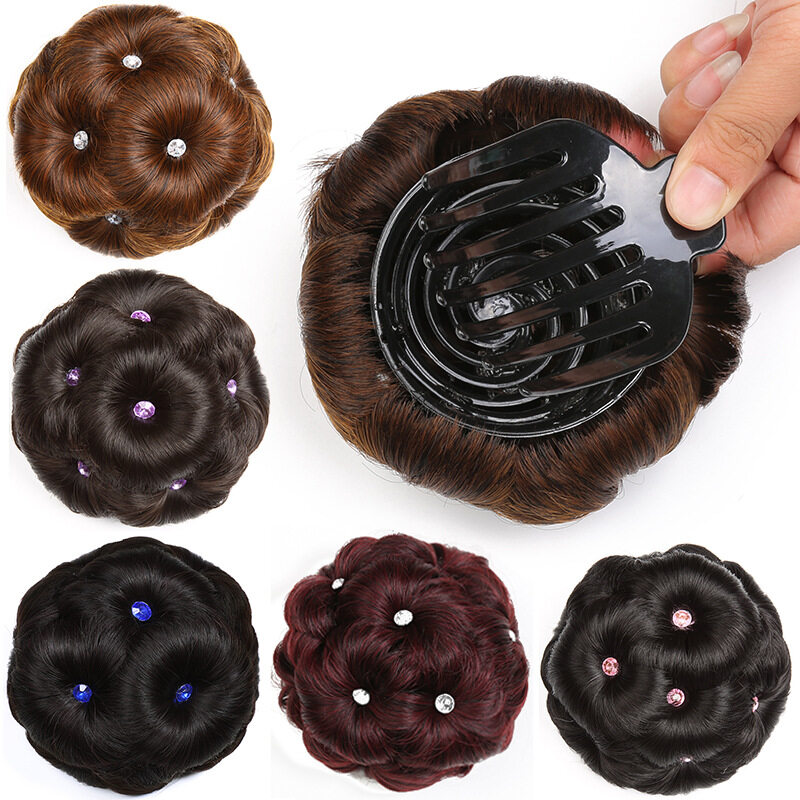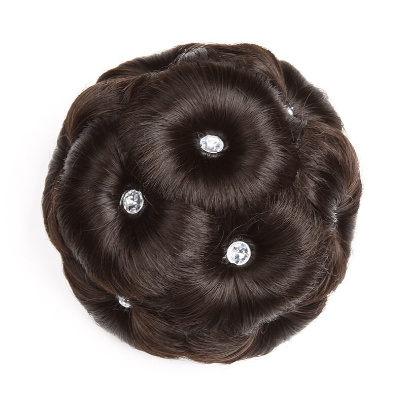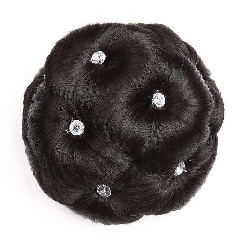 Nine Flower Bun with Diamond Clip Wig Bud Head Bridal Hair Ornament Comb Hair Bun Ball Head Wig for Women
