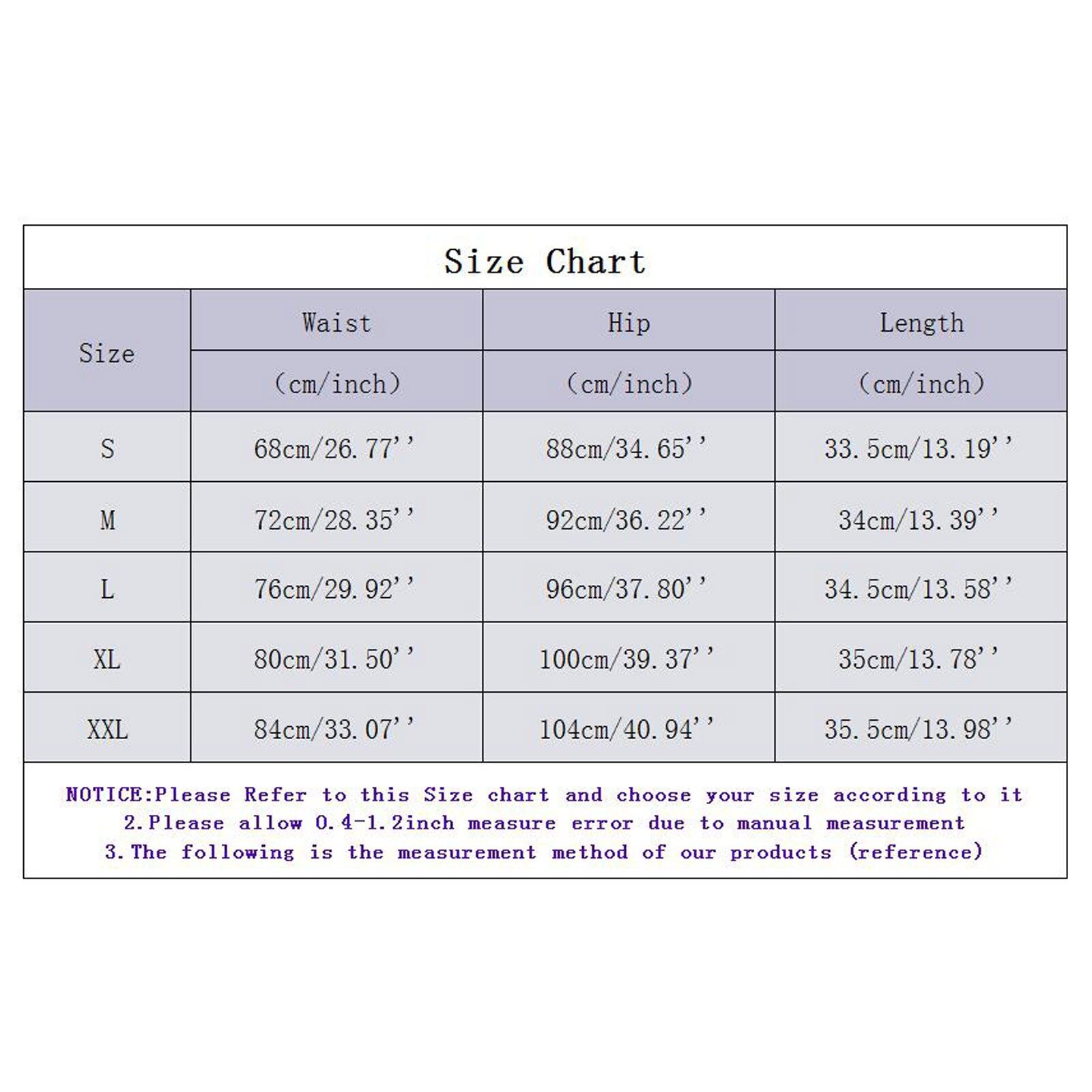 | Size:M | Waist:72cm/28.35'' | Hip:92cm/36.22'' | Length:34cm/13.39'' |