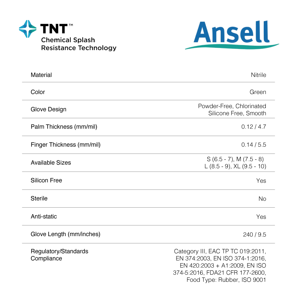 ANSELL Touch N Tuff 92-600 Disposable Nitrile Glove, 100pcs/box (Enhanced Chemical Splash Protection / Powder Free)