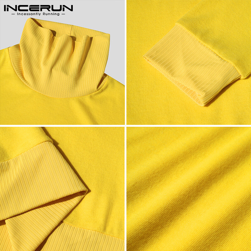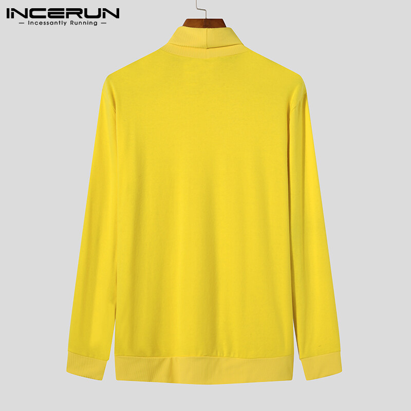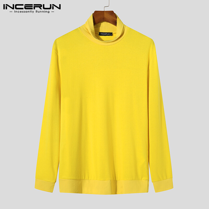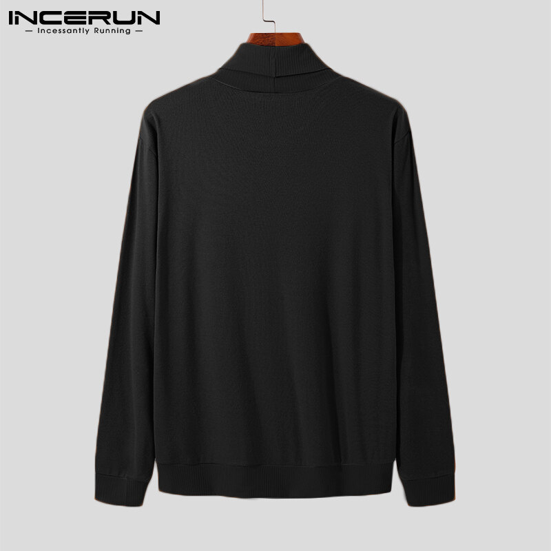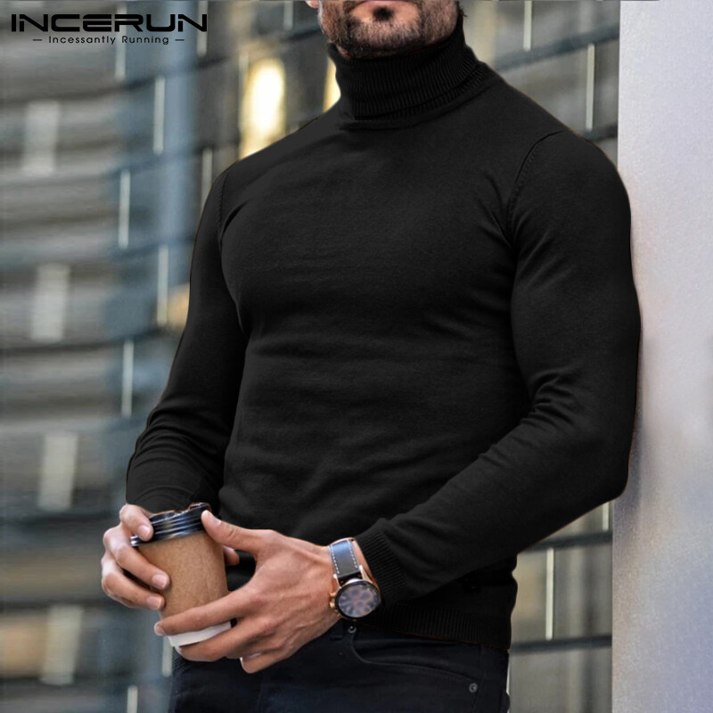 [Perfectly] Western Style INCERUN Men Long Sleeve Turtle Neck Sport Gym Top Fit Winter Pullover Jumper Shirts
