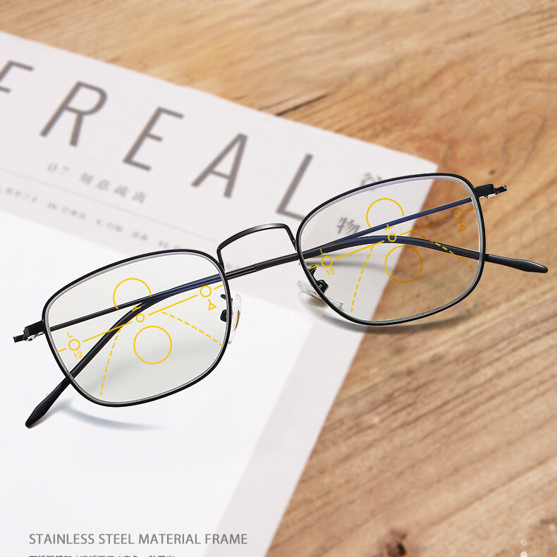 Anti-Blue Light Bifocal Reading Glasses Both Far and Near Progressive Multi-Focus Reading Glasses Frameless Trimming Flat High Quality Eyeglasses PTQ