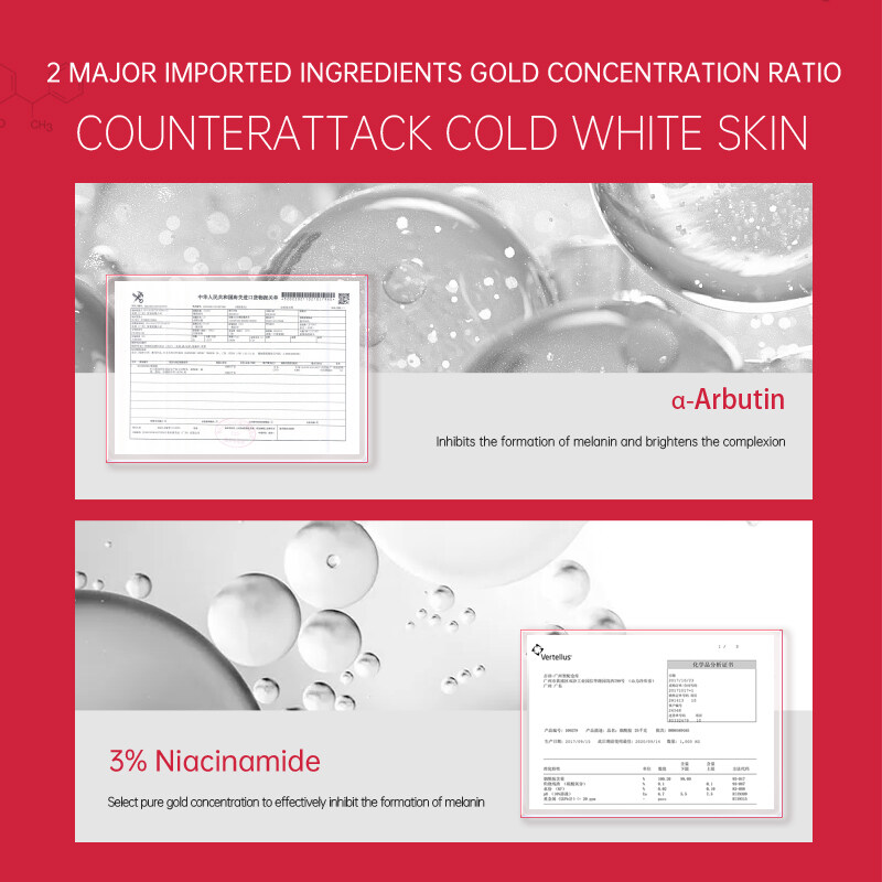 Product composition:Water, caprylic/Capric triglyceride, 1, 3-propylene glycol, butanediol, C14-22 alcohol, C12-20 alkyl Glucoside, Glucose, α -arbutin, Glycerin, Cetyl alcohol, polydimethylsiloxane, 1, 2-pentanediol, PEG-100 stearate, Glycerol stearate, hydrogenated ethylhexyl olivinic acid, hydrogenated olive oil unsaponifiable, phenylethyl malechol, polyglycerol-10 stearate, nicotinamide, 3-o-ethyl ascorbic acid, propylene glycol, glycyrtinic acid, lecithin, tocopheryl acetate, Coconut oil glucoside, isononyl isononate, PHYLLACANTHA FIBROSA extract, BLETILLA STRIATA stem extract, CHONDRUS CRISPUS extract, phenoxyethanol, methyl hydroxybenzoate, SALIX ALBA bark extract, MORUSALBA. Leaf extract, biological sugar gum -1, polyamino acid polysaccharide condensation, BUTYROSPERMUM PARKII fruit fat, acrylic (ester) copolymer sodium, lecithin, hydroxyethyl acrylate/propylene Sodium dimethyl taurine copolymer, Squalane, polysorbate-60, Sorbitan isostearate, MAGNOLIA SIEBOLDII extract, PAEONIA ALBIFLORA Root extract, 1, 2-hexadiol, p-hydroxyacetophenone, Myrrh, Lactobacillus/soybean milk fermentation product filtrate, Xanthan gum, Sodium dihydrogen phosphate, GLYCYRRHIZA GLABRA root extract, EDTA disodium, butylhydroxytoluene, Sodium hyaluronate, disodium hydrogen phosphate, (daily) essence
