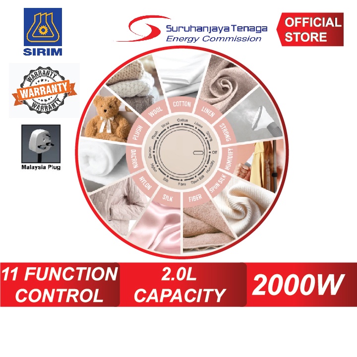 • Power 2000W • Water tank capacity 2.0L • Heat up time 35 seconds • Continuos working up to 65 minutes • Steam output 40g/min • 3 section escopic stand • Heat resistant hose for steam supply • Caster for easy portability • Steam temperature 98°C • Work indicator • Adjustable steam output