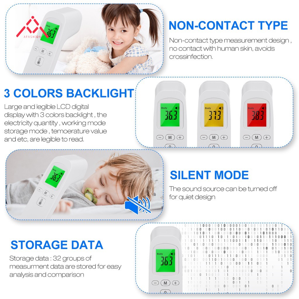 Light & Easy Digital Infrared 体温测温枪 Termometer Suhu Badan 摄氏温度计 READY STOCK Features: : infrared laser light alignment measurement, easy to use. : temperature can be detected within measuring distance, which very convenient. Description: Fast temperature measurement, automatic detection, high precision, high performance infrared s. Specifications: Color: white Material: plastic Battery: 2*1.5V AAA batery(not included) Display: digital Measurement site: forehead Measurement method: non-contact Product size: 14.3*3.5*4.5cm Package Included: 1x Notes: 1. Due to the difference between different monitors, the picture may not reflect the actual color of the item. We guarantee the style is the same as shown in the pictures. 2. Please allow slight dimension difference due to different manual measurement.