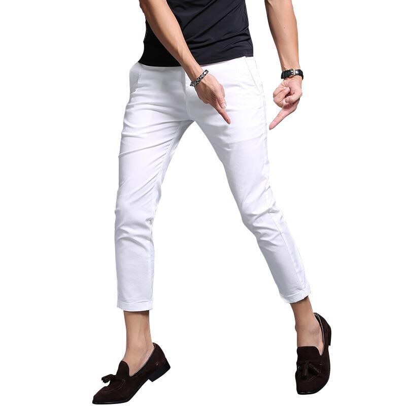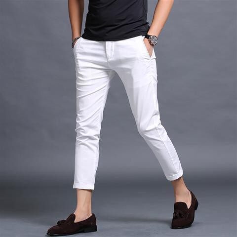 White Casual Nine-point Pants Men S Slim Korean Version of 9-point Small Trousers British Style Trend All-match Skinny Thin Seluar Kasual Putih Sembilan Titik Lelaki Pendek