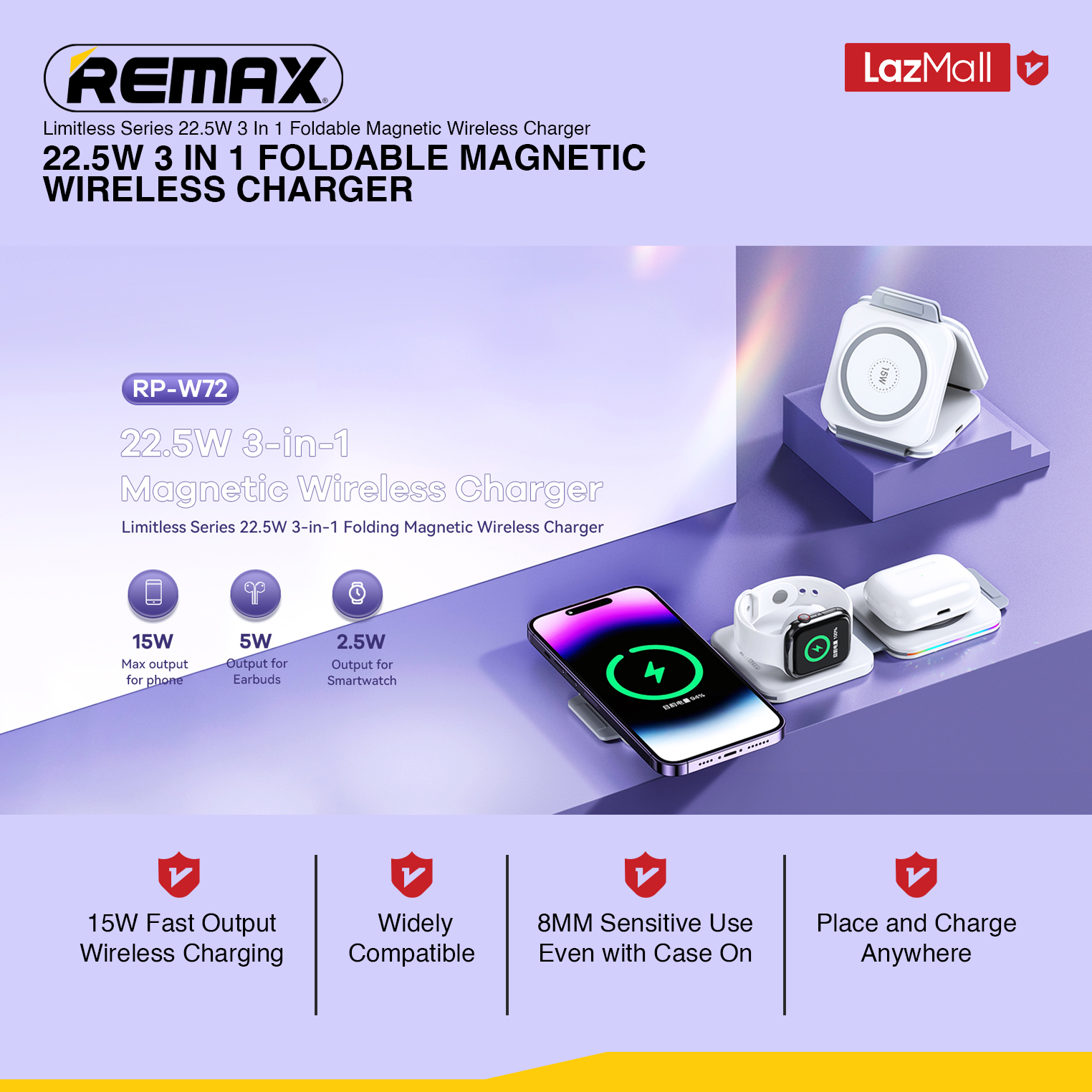 [Remax Energy] RP-W72 Limitless Series 22.5W 3 In 1 Folding Portable Magnetic Wireless Charger