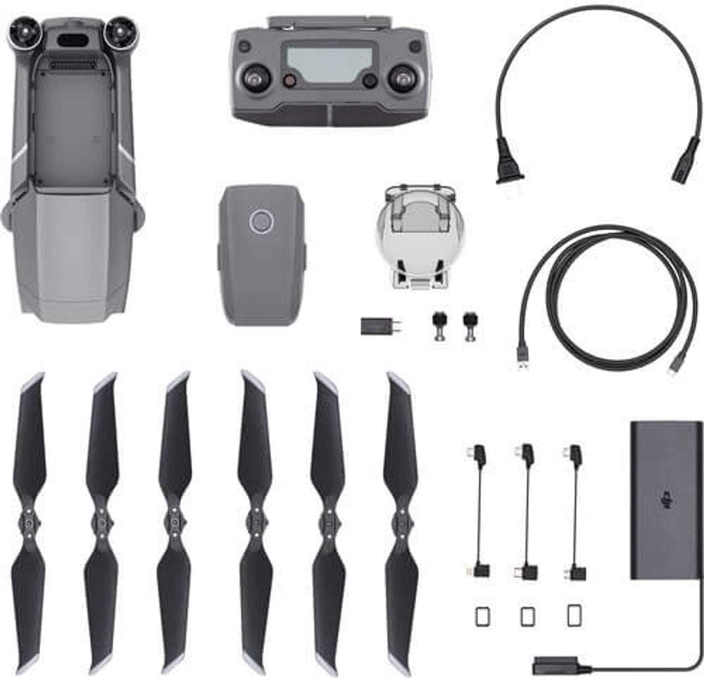 您将得到: DJI Mavic 2 Zoom、智能飞行电池、万向节保护器、遥控器、3 个螺旋桨(一对)、电池充电器、电源线、通信电缆(USB3. 0 Type-C)、USB 适配器、备用控制棒(一对)、RC 电缆(Lightning 连接器)、RC 电缆(标准 Micro USB 连接器)、RC 电缆(USB Type-C 连接器)。